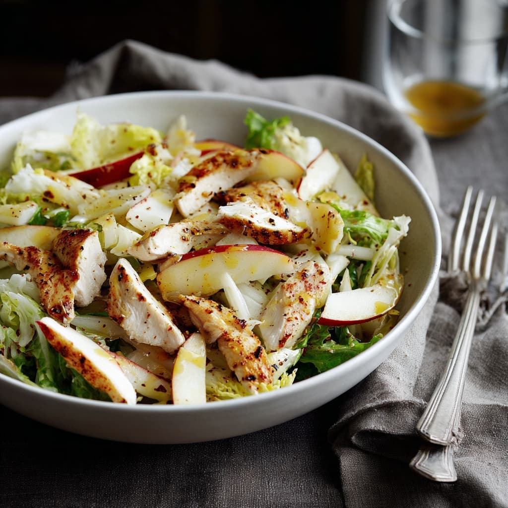 Andijviesalade met kip, appel en mosterdvinaigrette