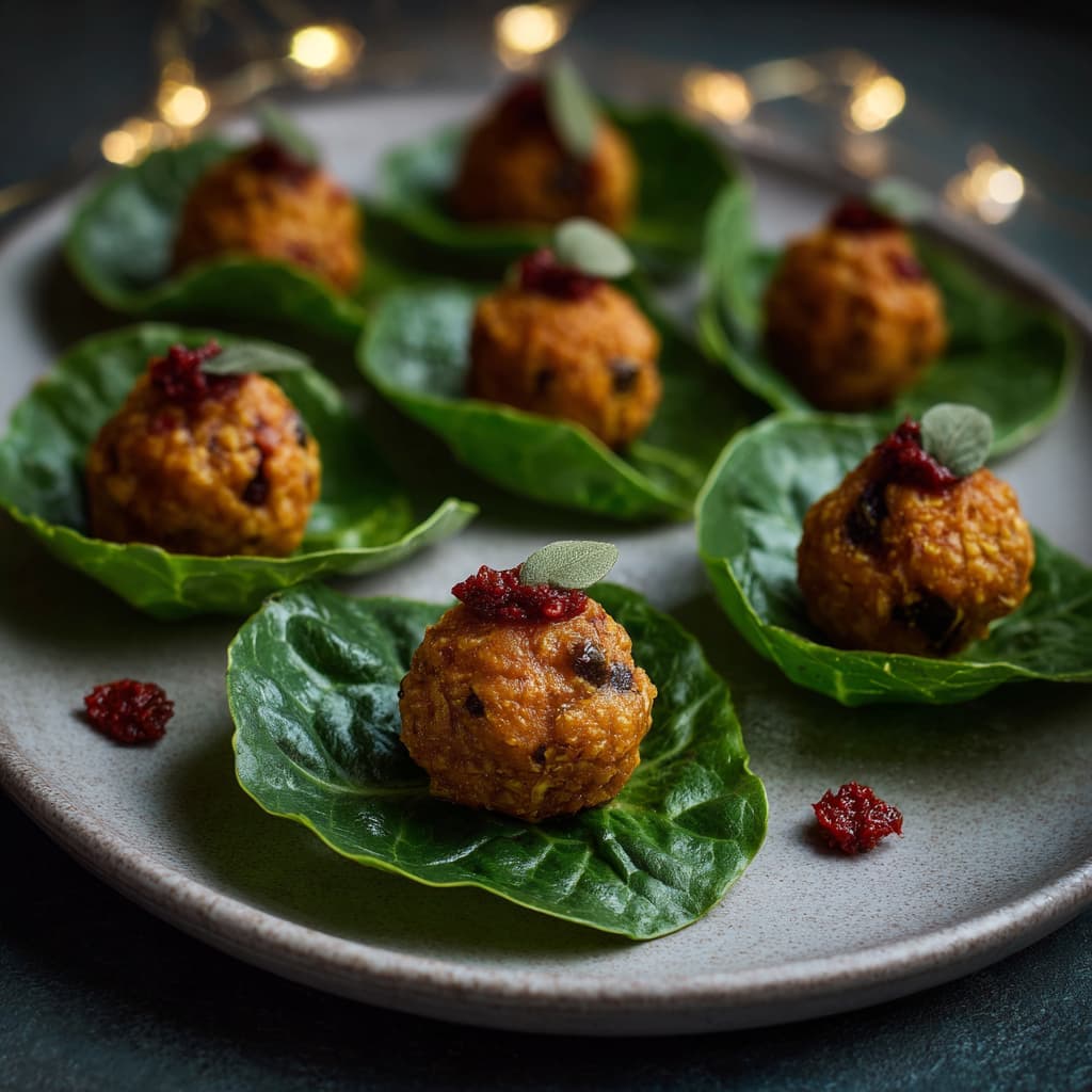 Deze cashewnootballetjes zijn kleine, hartige feesthapjes die perfect passen bij een kerstaperitief. De combinatie van cashewnoten, olijf, courgette en zongedroogde tomaat geeft rijke smaken zonder zwaar te worden. Ze zijn in een kwartier gemaakt en kunnen zowel in de pan als in de oven bereid worden — ideaal voor ontspannen feestkoken. Serveer de balletjes op kleine blaadjes little gem voor een fris en feestelijk hapje.