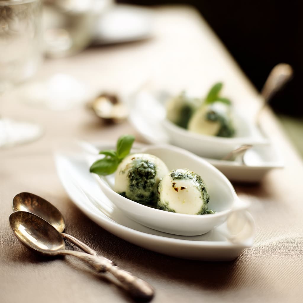 Vorm kleine quenelles of bolletjes met twee lepels en serveer.