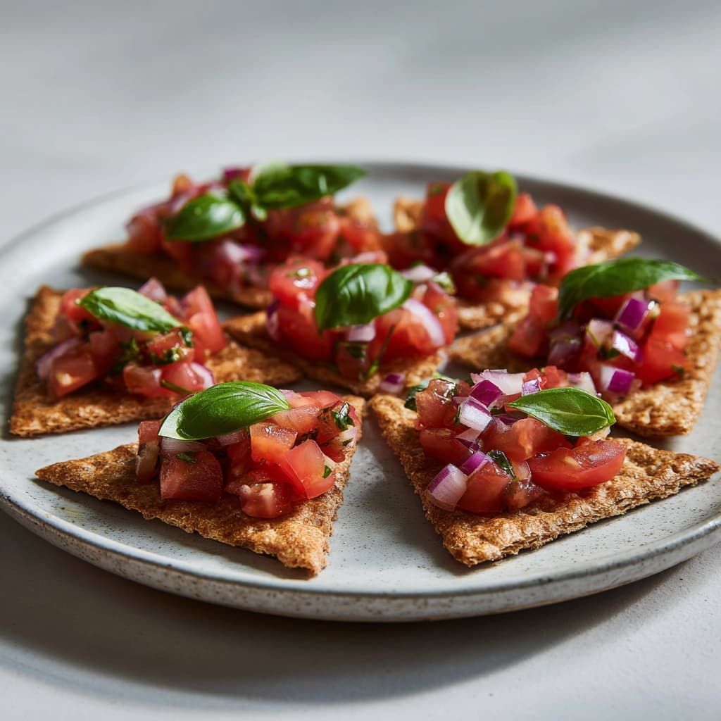 Crispy, fresh, and super quick to make — perfect for lunch or a light snack. Serve on a long, elegant plate and let the crispbread triangles overlap slightly for a playful Italian touch.