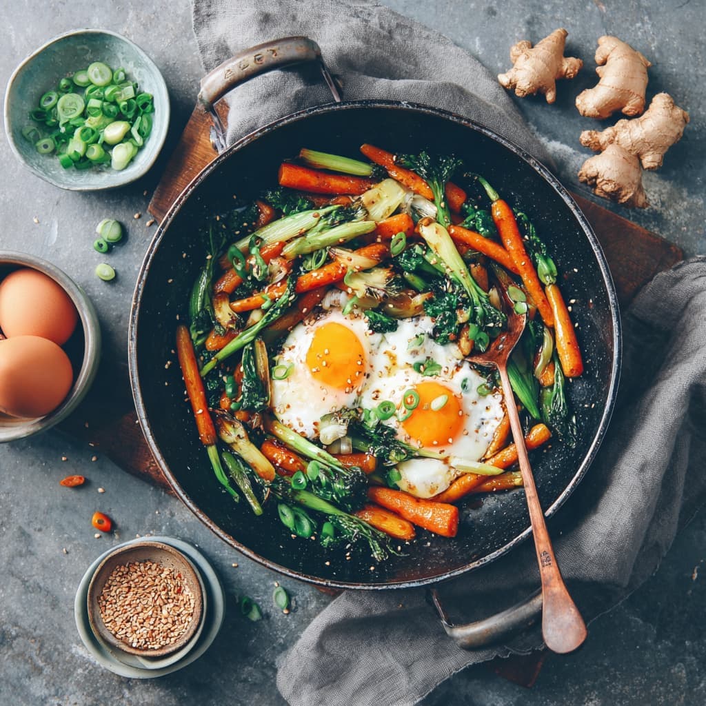 Allow to cool completely and store for up to 1 day in the refrigerator. Reheat briefly in the wok or microwave (not too long to keep the egg soft).