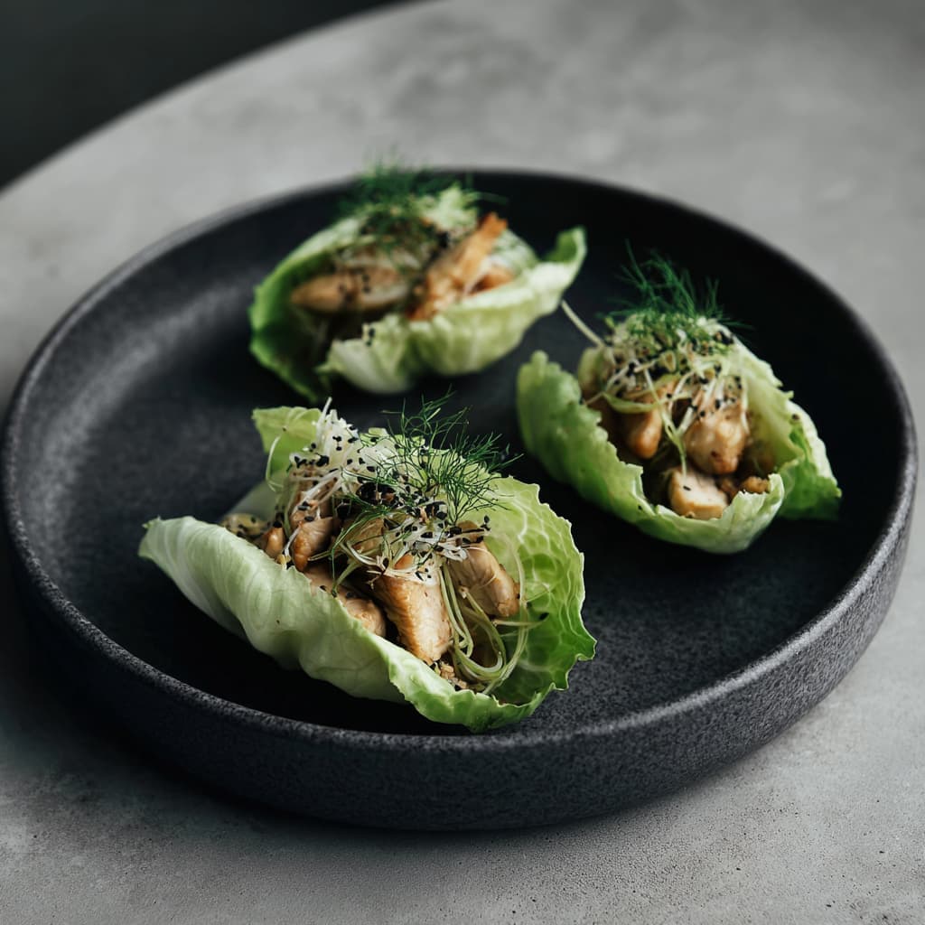 Serve immediately as a light, refreshing wrap. Light, crisp Chinese cabbage wraps filled with juicy chicken and spices — perfect for a quick, healthy lunch.
