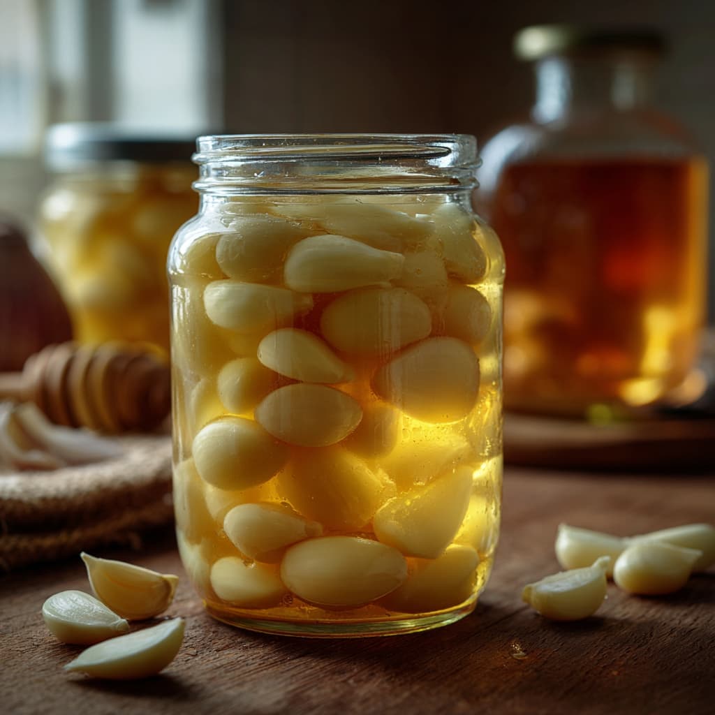 Fill the jar two-thirds full with garlic and pour in enough honey to completely cover the cloves.