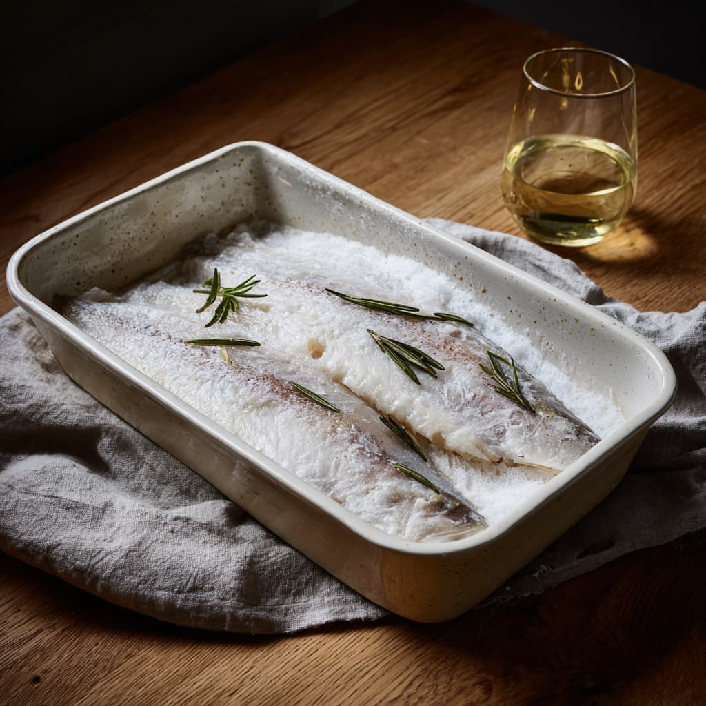 Serve the fish as beautiful fillets with a touch of lemon and fresh rosemary. Soft, aromatic, and wonderfully pure — the fish cooks in a fragrant salt crust, keeping it tender and juicy.