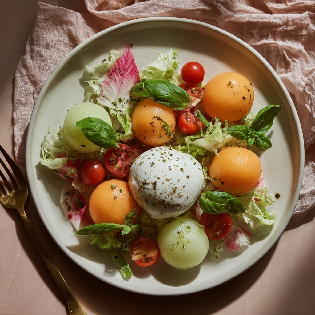 Serve this salad well chilled to balance the creamy burrata with the refreshing melon.