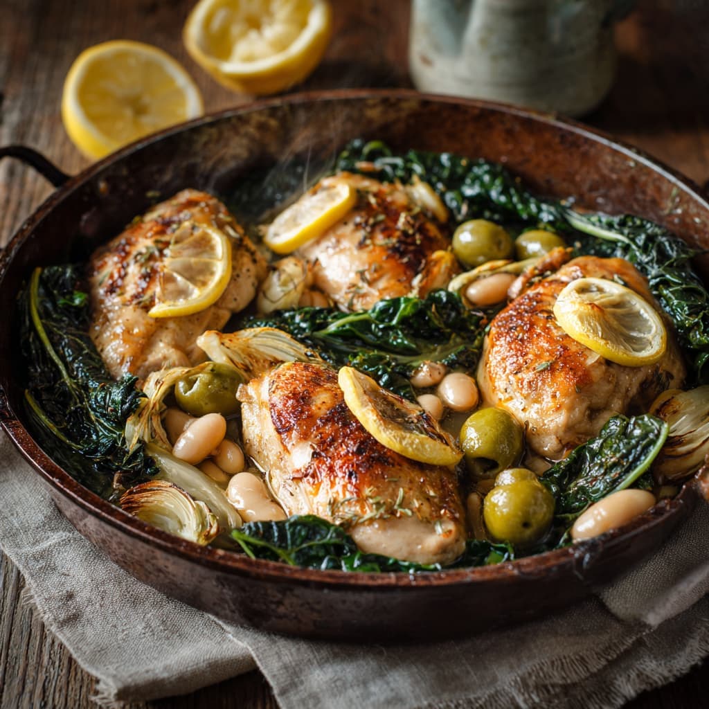One-Pan Chicken with Lemon, Olives, and Cavolo Nero