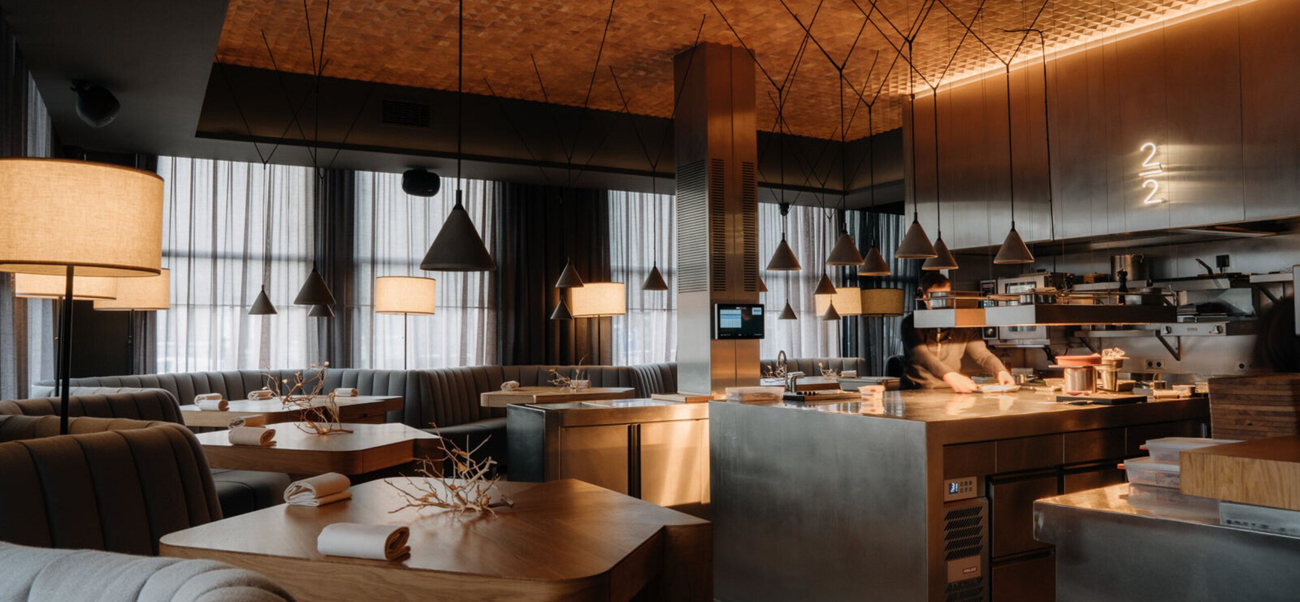 “At restaurant 212 in Amsterdam, everything revolves around interaction and experience. The understated elegant table setting offers an intimate view of the kitchen, where precision and presentation are key. Dishes like lightly poached langoustine and perfectly grilled turbot showcase craftsmanship. The signature dessert, a sorbet of granny smith apple and ginger, concludes the experience in a refined manner.”