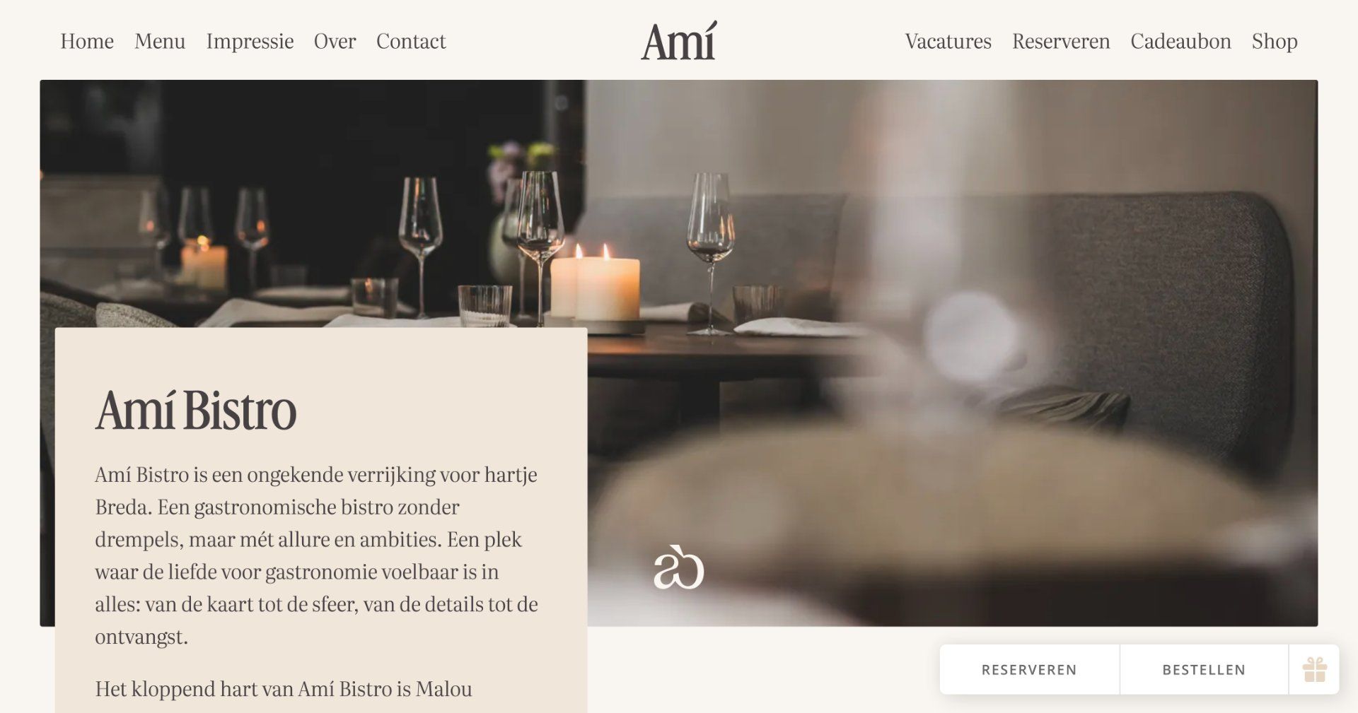 “At Amà Bistro in Breda, you'll feel right at home thanks to the warm, homely atmosphere. French elegance is evident everywhere, from the carefully prepared dishes to the friendly service. Chef Malou Hagenaars and her team provide a culinary experience that is both refined and relaxed. The fresh daily products and artisanal preparations make every dish a delight to taste.”