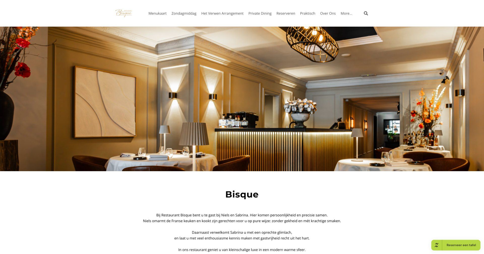 “At Restaurant Bisque in Groningen, you are welcomed by the warm hospitality of Niels and Sabrina. The intimate atmosphere and modern French cuisine create a unique culinary experience. Chef Niels Schievink prepares dishes with pure flavors, while sommelier Sabrina Mans guides you with her wine expertise. The restaurant offers a refined ambiance where you can enjoy a carefree evening out.”