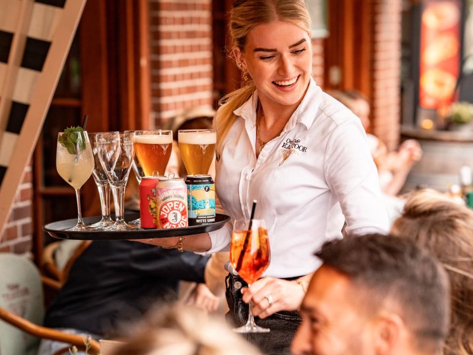 Inside, there's a cozy, friendly café atmosphere that often becomes lively, especially later in the evening. Wooden tables, a bar full of wine bottles, and the buzz of guests create a warm, informal ambiance. On sunny days, the terrace by the water quickly fills up with people enjoying a drink while the city life of Alkmaar passes by.