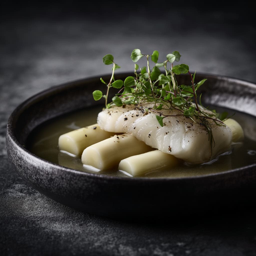 A refined fish dish where tender turbot, mild asparagus, and an elegant, light cream sauce come together. Calm, pure, and perfectly balanced for a Metabolic dinner. This dish is at its best when served warm in a deep plate, allowing the creamy sauce to frame it softly.