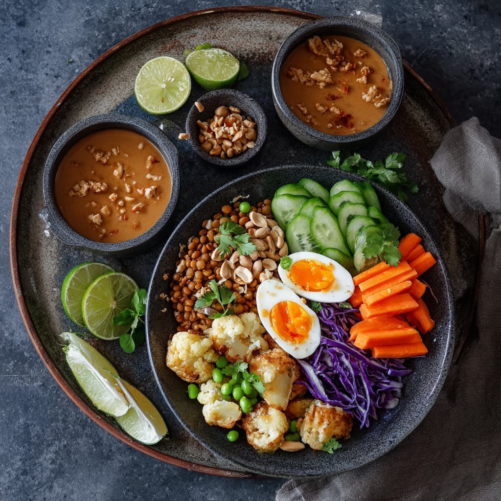 Volledig plantaardig, eiwitrijk en heerlijk romig door de lichte pindasaus.