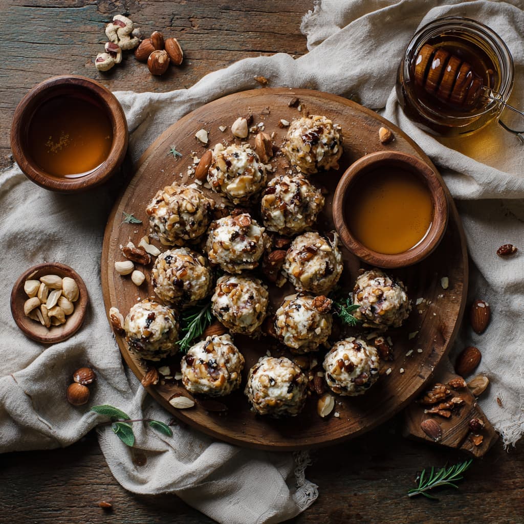 Deze kleine geitenkaasballetjes zijn zacht, romig en precies luxe genoeg voor een borrelmoment. De geitenkaas vormt een mooie basis voor krokante noten en een vleugje honing, waardoor elk hapje zowel fris als rijk smaakt. Perfect voor een feestje, maar net zo geschikt als elegante traktatie voor jezelf. Serveer gekoeld zodat de geitenkaas stevig blijft en de honing subtiel zoetigheid geeft.