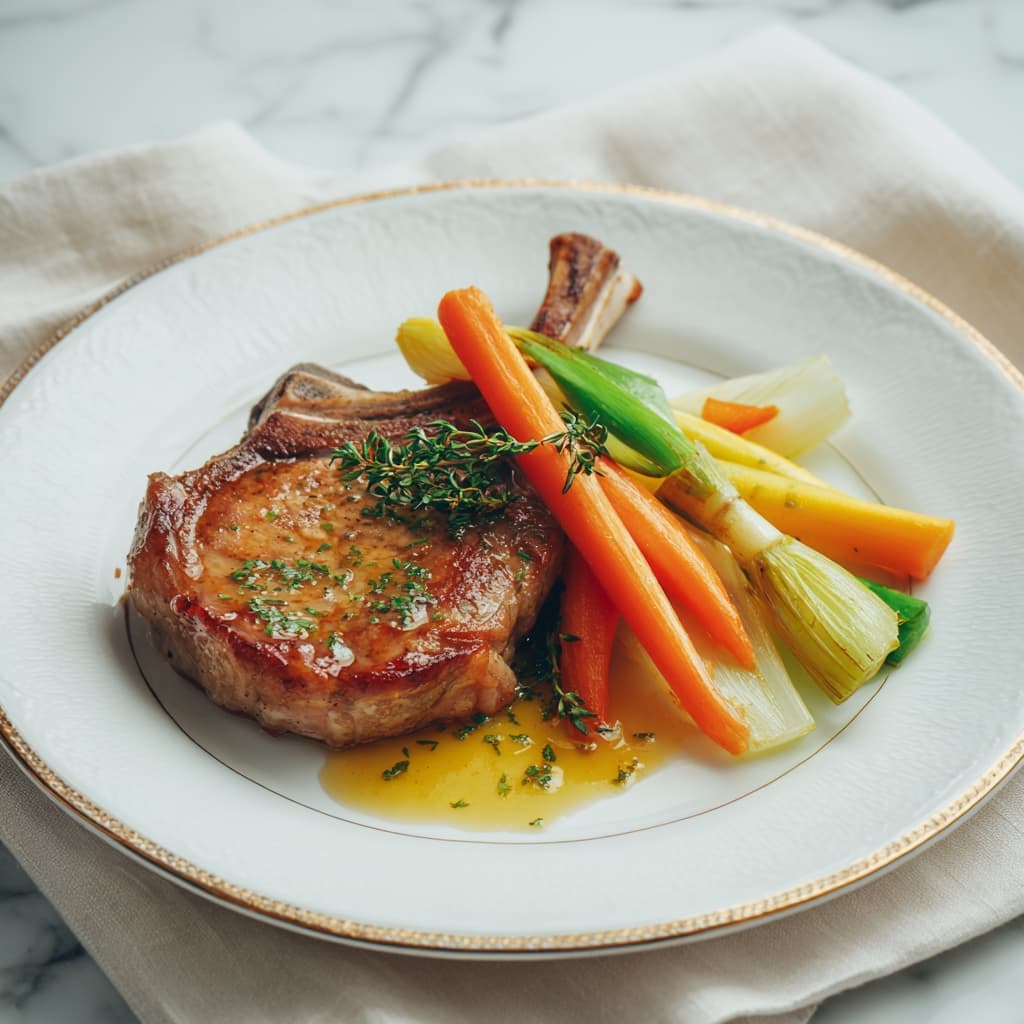 Kalfskarbonade met gestoofde groenten en kruidenjus