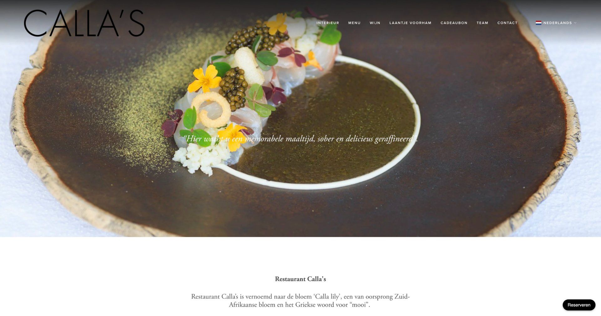 Restaurant Calla's in Den Haag biedt een verfijnde culinaire ervaring met een focus op kwaliteit en smaak. Onder leiding van chefkok Ronald van Roon, geniet je van gerechten met regionale ingrediënten, vaak uit de eigen groentetuin. Het restaurant, dat is vernoemd naar de elegante Calla lily, straalt een ingetogen luxe uit en is een ware oase van rust in de stad.