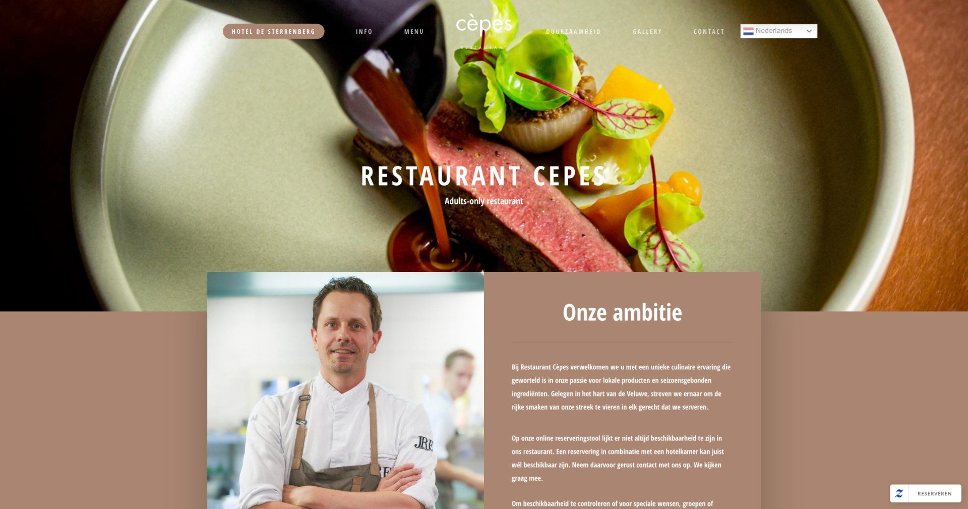 Restaurant Cèpes in Otterlo is een culinaire bestemming waar duurzaamheid en lokale ingrediënten centraal staan. Chef Robert Hartelman serveert een verfijnd menu met pure smaken, ideaal voor liefhebbers van culinaire luxe. Gelegen in de Veluwe, biedt het restaurant een serene en sfeervolle eetervaring dankzij het 'only adults'-beleid.