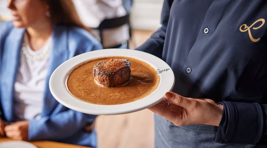 “Loetje Haarlem is dé nieuwe hotspot voor wie houdt van een sappige biefstuk in jus — geharder dan een regenbui, zachter dan je avondglaasje. We gingen voor de iconische ossenhaas in jus met witbrood, en kregen meteen dat vertrouwde Loetje-gevoel: pure smaak, royale jus, precies perfect gebakken. Het interieur is warm en bistro-stijl: hoekbanken, raamplaatsen met uitzicht op de Grote Markt en de St. Bavokerk, goede sfeer en makkelijk schakelen van lunch tot diner. Of je nu komt voor biefstuk, burger, vis of iets vegetarisch — Loetje laat zien dat klassiek kan met kwaliteit én ontspannen vibe. Als je zin hebt in eerlijk eten zonder poespas: dit is je plek.”