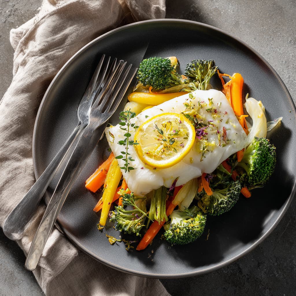 Bak of stoom 10–12 minuten tot de vis zacht en glanzend wit is.