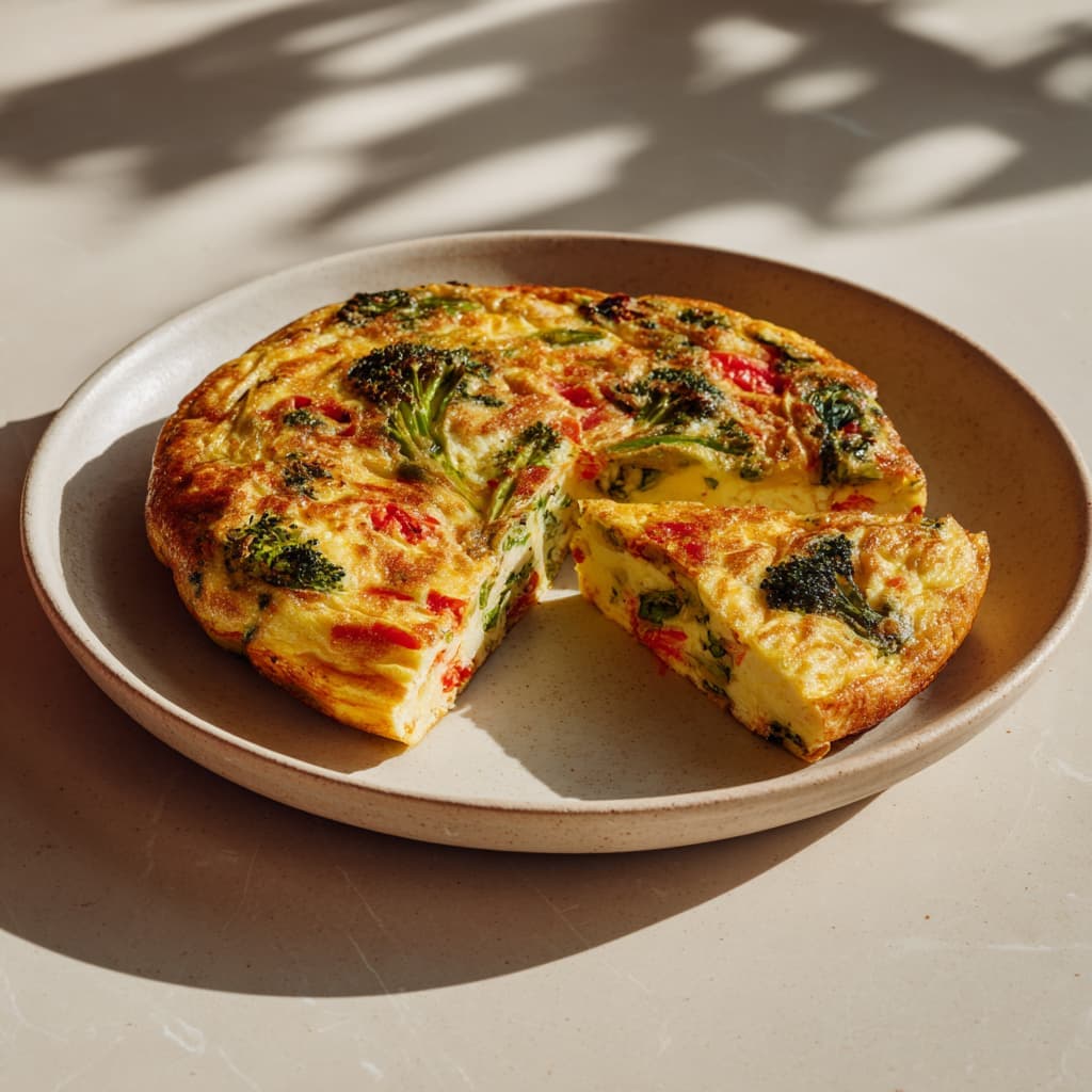 Serveer de tortilla in punten gesneden, met wat verse kruiden of een paar ringen lente-ui bovenop