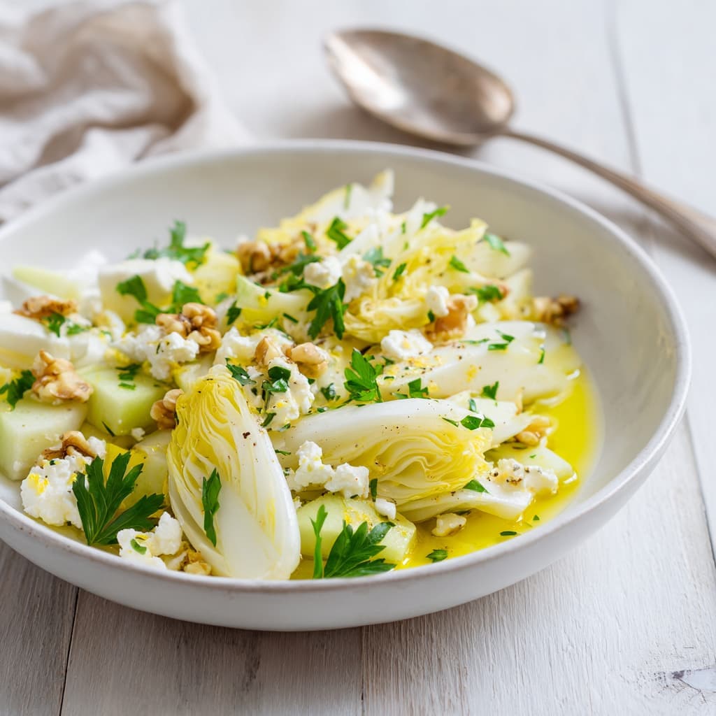 Bewaar maximaal 1 dag in de koelkast; voeg de dressing pas toe vlak voor serveren om de witlof knapperig te houden